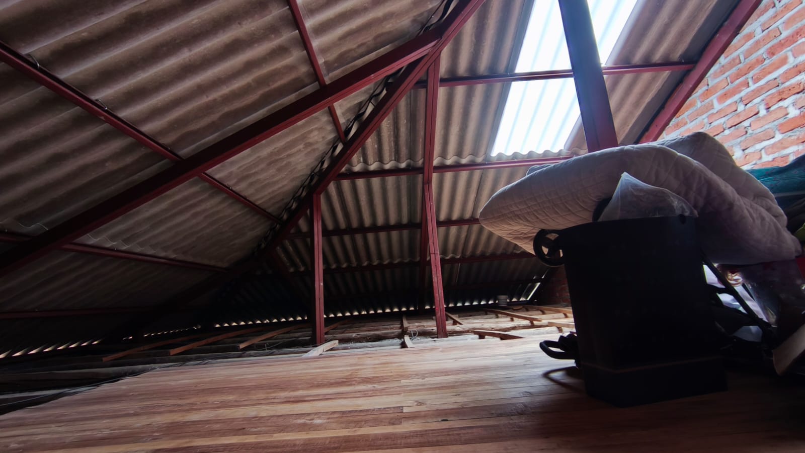 Guardilla con una escalera aérea para modificación de bodega o habitación extra.